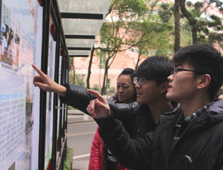 記者看到西南大學(xué)人流較大的傳媒大廣場擺放著印有實踐照片的展板,上面有團(tuán)隊成員在實踐中的照片、實踐感言以及活動花絮等,而展板前均聚集了不少學(xué)生。帶隊老師李海峰對記者表示,希望能在全國高校中形成一種樂于實踐的氛圍,倡導(dǎo)大學(xué)生積極開展社會實踐。