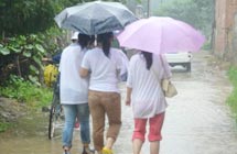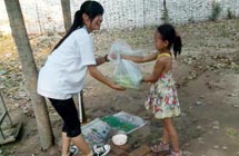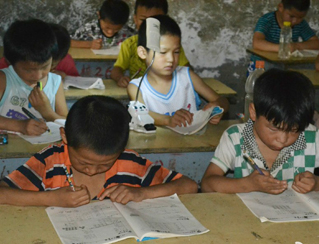 鄉(xiāng)村小學,沒有體育器材,沒有娛樂設施,孩子們只能選擇自娛自樂。有次,志愿者們看到孩子們用一根細樹棍,一塊石柱,就玩起了翹翹板。每到夜晚,志愿者的住處就擠滿了學生,大家或做游戲,或一起用筆記本電腦看哆啦A夢,從孩子們看動畫片的那份專注,志愿者們看得出來,孩子們很少能看到這種動畫片。天陰教室昏暗,加上學校經(jīng)常斷電,孩子們不得不在陰暗的環(huán)境中上課。老師拿來自己的小臺燈給在角落的孩子照明,即使在這樣的情況下,孩子們依然學習很認真。申倩老師應該是最受歡迎的啦,她多次收到孩子們的“示愛書信”,那些小紙條上往往寫著“音樂老師你唱的歌很好聽,我喜歡你”