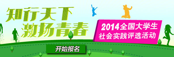 以學(xué)習(xí)宣傳習(xí)近平總書記2014年“五四講話”精神為契機,以引導(dǎo)青年學(xué)生培育和踐行社會主義核心價值觀為重點,引導(dǎo)廣大青年學(xué)生深入社會、了解國情、接受鍛煉,堅定為實現(xiàn)中國夢努力奮斗的理想信念,人民網(wǎng)將舉辦“2014全國大學(xué)生社會實踐評選”活動。本活動以“知行天下,激揚青春”為主題,面向全國大學(xué)生征集暑期社會實踐成果報告,通過展示和評選的過程,對內(nèi)容充實、成果突出、事跡典型的團隊或個人進行宣傳和表彰。