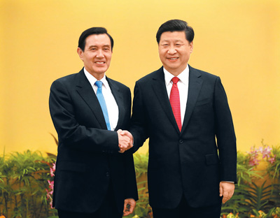 11月7日下午,中共中央總書記、國家主席習近平同臺灣方面領導人馬英九在新加坡會面,就進一步推進兩岸關(guān)系和平發(fā)展交換意見。新華社記者蘭紅光攝