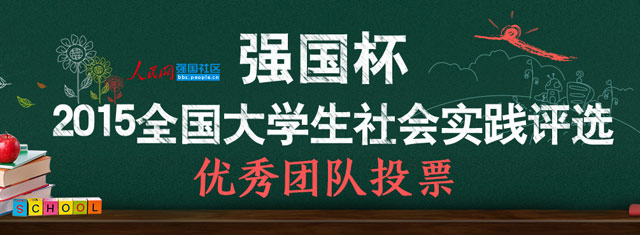 為勉勵廣大青年認真學(xué)習(xí)習(xí)近平總書記關(guān)于弘揚真善美、傳播正能量的講話精神,引導(dǎo)大學(xué)生積極參與社會實踐,在志愿服務(wù)過程中獲得鍛煉與成長,在共青團中央學(xué)校部、人民日報社政文部指導(dǎo)下,人民網(wǎng)以強國論壇為平臺舉辦“強國杯”2015全國大學(xué)生社會實踐評選活動;顒游烁鞔笤盒:蛷V大學(xué)生的熱情參與,共有500多所院校的數(shù)千個團隊報名,組委會從中選出200個團隊正式入圍并展開網(wǎng)絡(luò)投票。