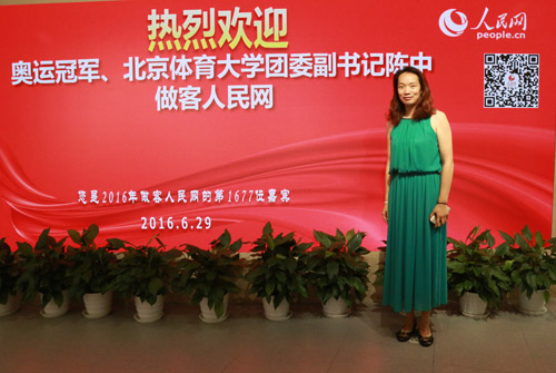 奧運(yùn)冠軍、北京體育大學(xué)團(tuán)委副書(shū)記陳中做客人民網(wǎng)(代睿 攝)