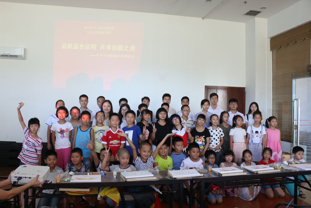 實踐隊與泉州海外交通史博物館共同開展了“啟航藍(lán)色征程,共享創(chuàng)新之美——7.11中國航海日”特別活動,向30位小朋友講解航海小知識,介紹古老的旗語和莫爾斯電碼等。“希望我們的航海文化能夠傳播出去,從娃娃抓起” 隊長胡栩禎說。