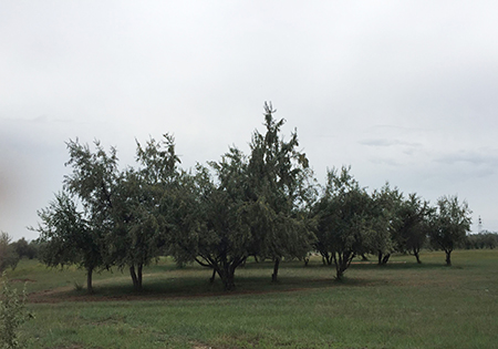 沙棗樹看上去不繁茂、樹干矮、粗皮,卻可以抗御著烈風,阻擋沙漠的前移,在缺水、多風沙、鹽堿嚴重、土壤貧瘠的環(huán)境里頑強地活下來,撐起沙海里一片綠蔭,從不向瘋狂的風沙低頭。
