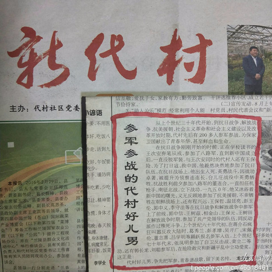 前后200多人參軍參戰(zhàn),用青春譜寫戰(zhàn)歌,用奉獻(xiàn)報(bào)效祖國。這是代村人的驕傲,更是我們國家的驕傲。