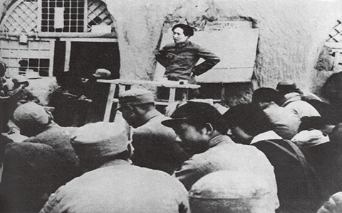 毛澤東非常重視理論聯系實際這一馬克思主義學風的養(yǎng)成,強調必須始終堅持把馬克思主義與中國實際緊密結合起來。圖為毛澤東在為陜北公學學員講課。