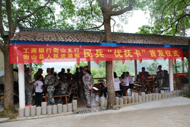 前不久,衡山縣人武部與中國工商銀行衡山支行舉行民兵“優(yōu)撫卡”首發(fā)儀式,給正在參加防汛演練的30余名基干民兵送去了一份特別的小禮物——“隨軍行擁軍優(yōu)撫卡”。 這張卡,是今年年初該縣人武部主動(dòng)與銀行進(jìn)行溝通協(xié)調(diào)后,專門設(shè)計(jì)制作的一張融身份識(shí)別功能與金融服務(wù)功能于一體的民兵優(yōu)撫卡?ǖ恼姹尘皥D案是一位身著軍裝的民兵照片,并印有“隨軍行擁軍優(yōu)撫卡”字樣。