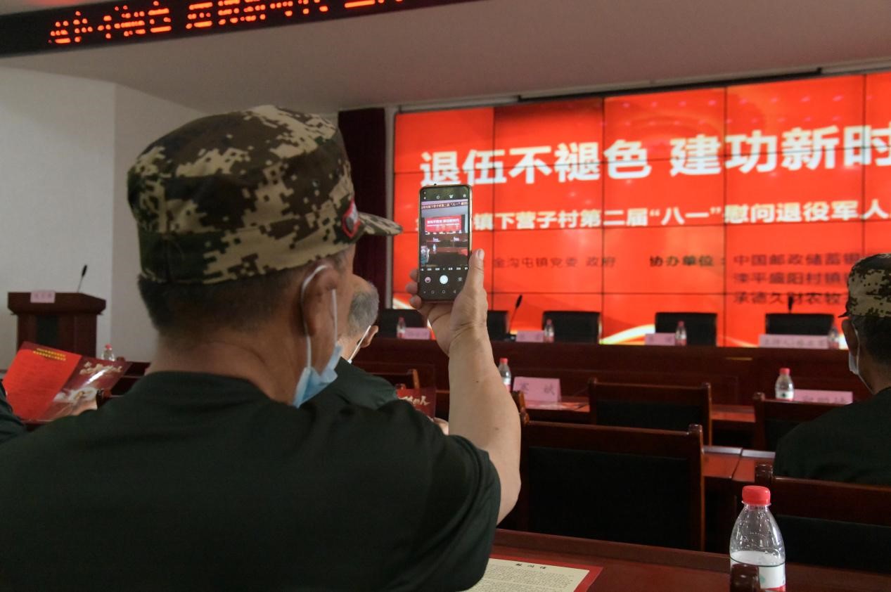 8月1日下午,灤平縣金溝屯鎮(zhèn)下?tīng)I(yíng)子村聯(lián)合愛(ài)心企業(yè)中國(guó)郵政儲(chǔ)蓄銀行灤平支行、灤平盛陽(yáng)村鎮(zhèn)銀行金溝屯支行和承德久財(cái)農(nóng)牧開(kāi)發(fā)有限責(zé)任公司共同舉辦了“退伍不褪色 建功新時(shí)代”第二屆“八一”慰問(wèn)退役軍人座談會(huì);顒(dòng)現(xiàn)場(chǎng),大家歡聚一堂,共同慶祝中國(guó)人民解放軍建軍95周年,共敘魚(yú)水深情,并為優(yōu)秀退役軍人頒發(fā)榮譽(yù)證書(shū)。 王海琦 郎朗 攝